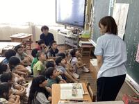「BGMを流しながら」「電子黒板で挿絵を提示しながら」など読み方も様々で、内容も命に関するものや芥川龍之介の名作「蜘蛛の糸」など、色々と工夫していただいています。読書への興味を広げる様々なアイデアを、いつもありがとうございます。