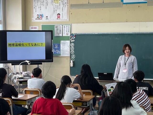 ヘルパーさんが使う車の写真を紹介されて「見たことある!」と興奮したり、一年生の黄色い帽子や安全タスキをプレゼントしていただいていることを知って驚いたりと、社会福祉協議会の仕事をより身近に感じることができたようです。