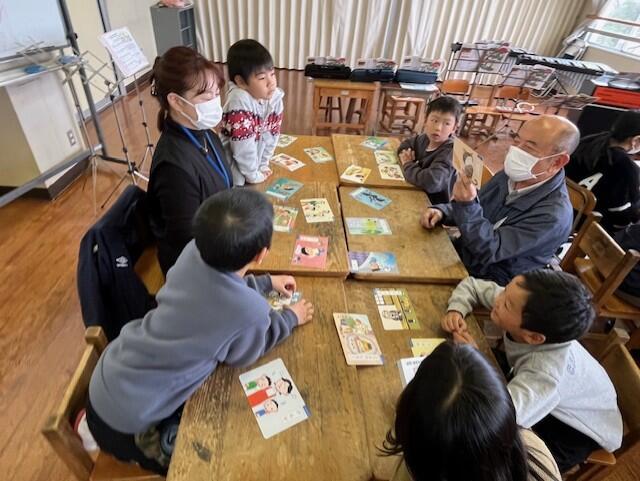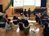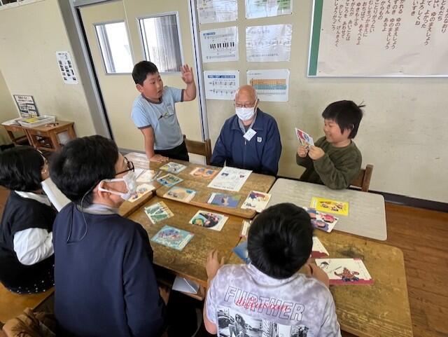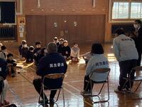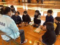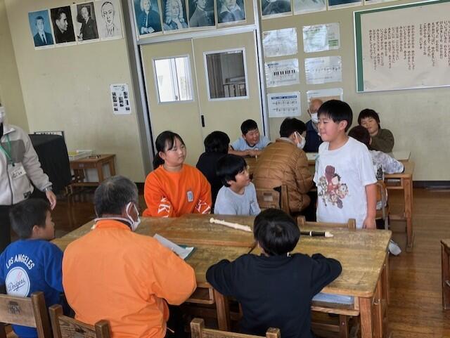 その後は、場所を体育館に移してミニ交流会を行いました。「僕が6年生の3学期の時に給食が始まりました。今から65年前ですよ。」などと、皆さんが小学生だった頃のお話を聞かせていただき、子どもたちも興味津々でした。ずいずいずっころばしで盛り上がった班もありました。
