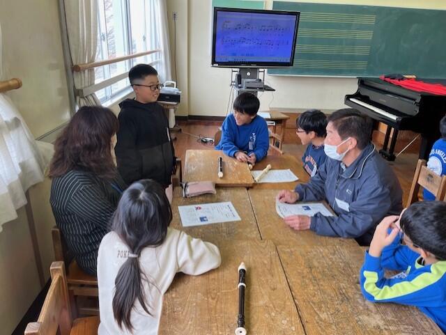 今日の音楽の時間は、湯前中学校から音楽の先生に来ていただき、専門的なこともいろいろと教えていただきました。