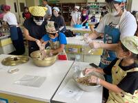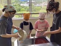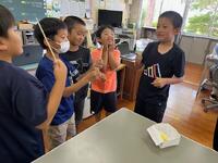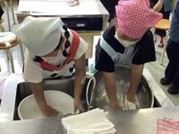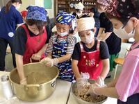 豆腐作りの工程やおいしい豆腐作りの工夫など、名人ならではの技をたくさんお話していただきました。帰りには出来立ての豆腐や揚げをお土産にいただき、給食の時間に早速、味見。あっという間に完食でした。