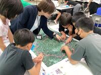 だるま落とし、おはじき、竹とんぼ、コマ回し、お手玉、けん玉の6つのコースを回り、地域の方を先生役にたくさん交流ができました。はじめはうまくできなかった子どもも、地域の方のアドバイスでだんだん上手になっていきました。