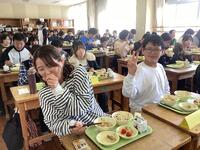 まずは親子給食。親子で机を並べて、楽しく給食をいただきました。今日のメニューは「卒業祝い献立」ということで、赤飯やつぼん汁でした。旬のイチゴもおいしかったですね。