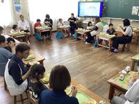 豆腐作りの工程やおいしい豆腐作りの工夫など、名人ならではの技をたくさんお話していただきました。帰りには出来立ての豆腐や揚げをお土産にいただき、給食の時間に早速、味見。あっという間に完食でした。