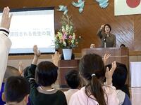 それぞれに、湯前小学校での思い出や子どもたちへのメッセージなどをお話ししていただきました。また、子どもたちから、感謝のお手紙や花束贈呈がありました。