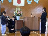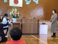 東様からは「大変なこともたくさんあると思いますが、湯前の素晴らしい自然を思い出して頑張ってください。」と激励の言葉をいただきました。6年生のこうのせさんが「中学校でも頑張ります」とお礼の言葉を述べてくれました。