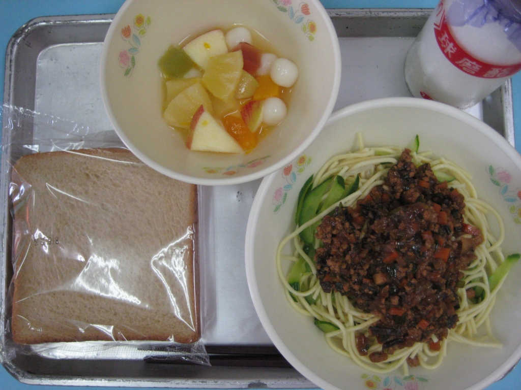 2013年9月9日 投稿日時 : 2013/09/09 ei/ho ☆ 黒糖パン ☆ ジャージャー麺 ☆ フルーツ白玉 「ジャージャー麺」は、中華麺の上に肉味噌をのせた料理です。肉味噌には、にんじん・たまねぎ・たけのこ・きくらげ・にらなど色々な野菜をたっぷり使いました。