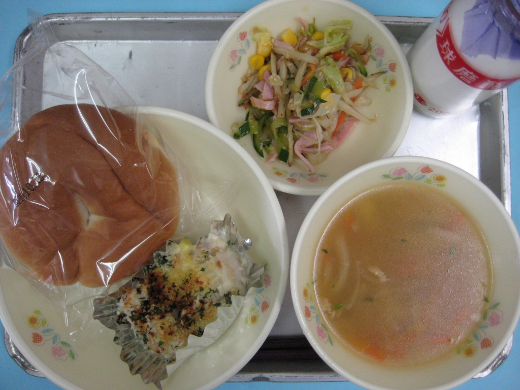 2014年1月8日 投稿日時 : 2014/01/08 ei/ho ☆ 米粉パン ☆ ウインナーと野菜のスープ ☆ マカロニグラタン ☆ キャベツのレモン和え あけましておめでとうございます。今年もみなさんが心身ともに健康にすごせるよう、心をこめて給食を作っていきたいと思います。よろしくお願いします!