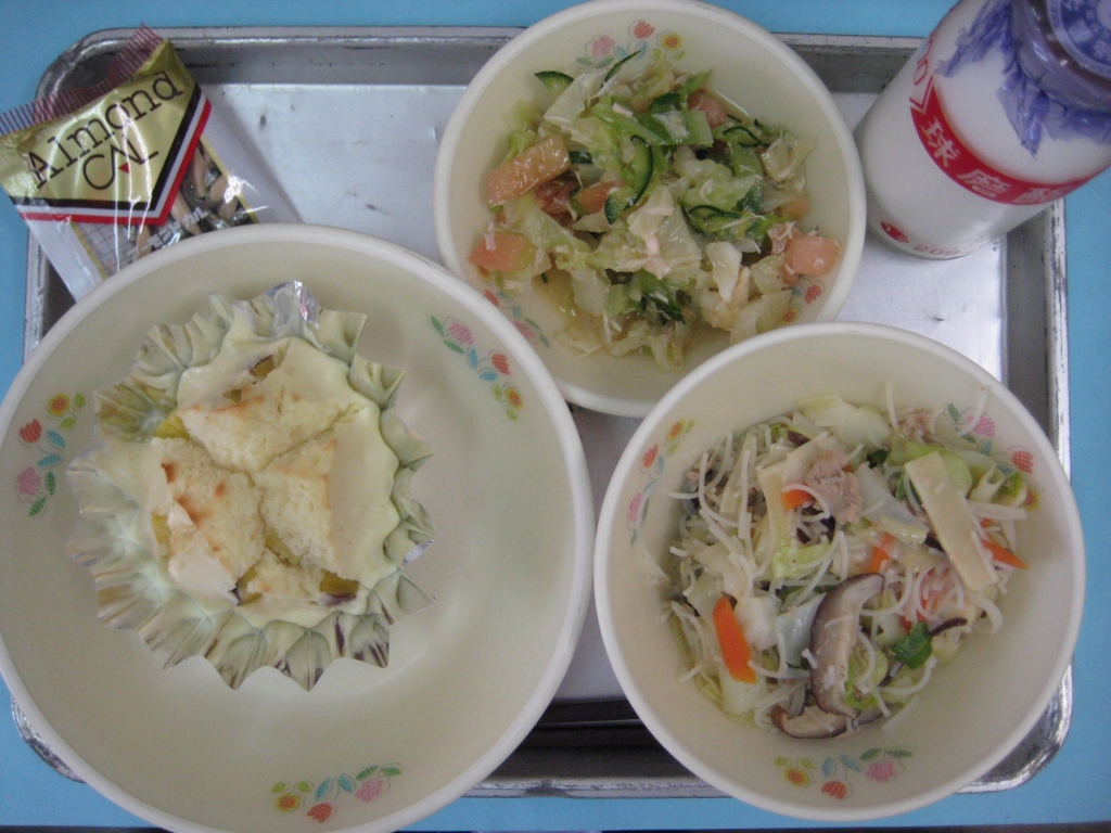 2013年10月28日 投稿日時 : 2013/10/28 ei/ho ☆ さつまいもの蒸しパン ☆ 焼きビーフン ☆ バンバンジーサラダ ☆ アーモンドカル 今が旬のさつまいもを使った蒸しパンです。時間をかけて蒸したので、さつまいもの甘みがよく出ていて、おいしく出来上がりました。
