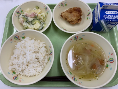 今日の給食を見た子どもたちが「これも好き、あれも好き~^^」と嬉しそうでした。