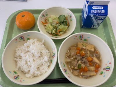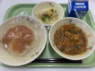 米粉パン、牛乳、カレーうどん、冬野菜サラダでした。