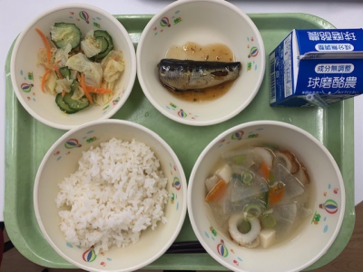 麦ごはん、牛乳、のっぺい汁、さんまゆずみそ煮、きんぴらごぼうでした。