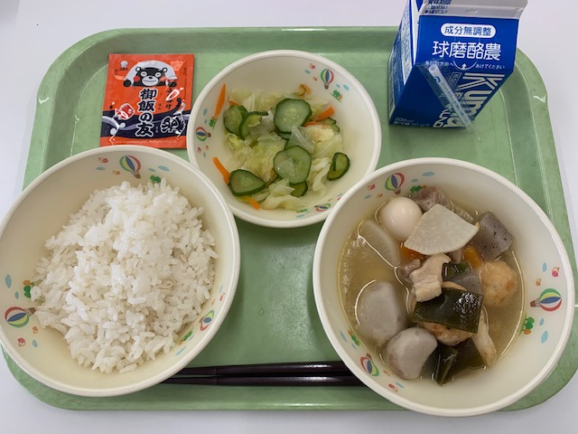 すでにお正月にもう食べた子もいたと思いますが、今日は給食の始まりということで雑煮や紅白なます、ぶりを使った「正月メニュー」にしました。