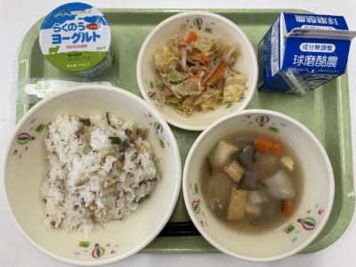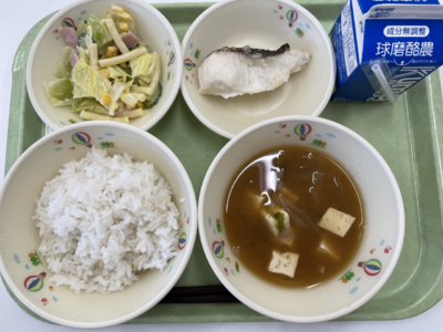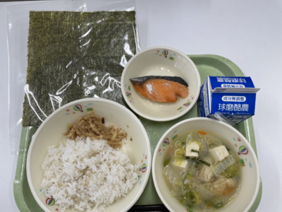 最初の給食は「おにぎり、焼き魚、漬け物」でした。