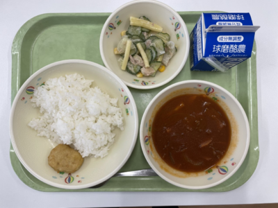 少し早いですが、給食では今日お祭りメニューにしました。