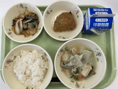 今日は給食でも一汁三菜にできるだけ近づけた一汁二菜の献立にしました^^