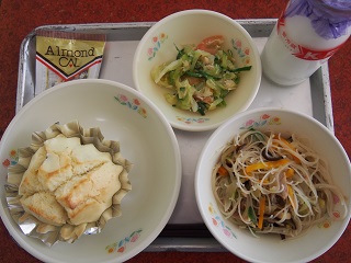 今日の給食 投稿日時 : 2015/10/20 ei/ho ★麦ごはん★牛乳★わかめスープ★ぶた肉のプルコギ-風★もやしのナムル今日は、ぶた肉のプルコギ-風でした。プルコギ-とは、韓国の料理で、プルは「火」、コギ-は「肉」を意味します。にんにくやしょうがが入ったタレにつけ込むのが特ちょうで、日本のすき焼きのようなものだそうです。今日の給食のぶた肉のプルコギ-風にもたっぷりのにんにくとしょうがが入っていました。しっかり食べてスタミナをつけましょう♪