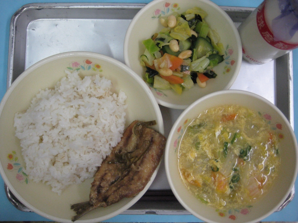 2014年1月30日 投稿日時 : 2014/01/30 ei/ho ☆ 麦ご飯 ☆ 白菜のかき玉スープ ☆ いわしの香味だれ ☆ 大豆とわかめのサラダ 「いわしの香味だれ」は、ねぎとしょうがの香味野菜をたくさん使っています。香味野菜は、体を内側から温めてくれる働きがあります。また、しっぽまで食べるといわしにふくまれるカルシウムをしっかりとることができます!