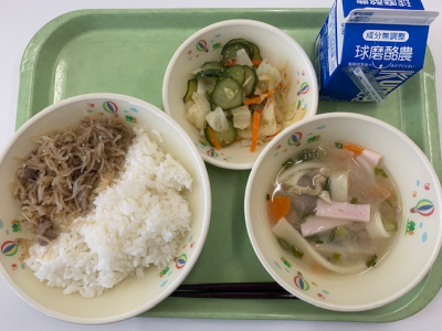 今日は給食でも、関西地方で夏至に食べられている「たこ」を使ったメニューにしました♪