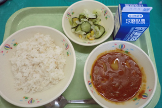 今日の給食 投稿日時 : 2018/07/09 ei/ho ★そぼろごはん★きゅうりとしらすぼしのすのもの★夏野菜のみそ汁 今日はとても暑い日でした。食欲はどうかなと心配しましたが、そぼろをごはんの上にかけて食べたので、食べやすかったようです。 夏野菜の季節になり、「苦手な野菜が給食に出ます。」と言った人がいました。「この間勉強したように夏野菜には、夏を元気に過ごすための栄養があるから食べようね。」と声をかけました。苦手な野菜があるかもしれませんが、夏野菜を食べて、暑い夏を元気に過ごしてほしいです。