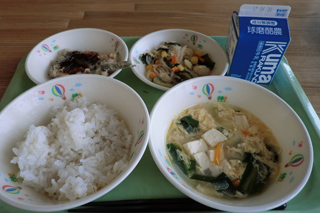 今日の給食 投稿日時 : 2017/07/03 ei/ho ★麦ごはん★牛乳★かぼちゃのそぼろ煮★トマトとオクラのあえもの★りんごゼリー 今日から7月です。夏野菜がおいしい季節になりました。今日のトマトは、湯前産のトマトを使いました。他にもかぼちゃ・オクラ・きゅうりと夏野菜がたくさん入っています。苦手な人もいましたが、よく食べてくれました。