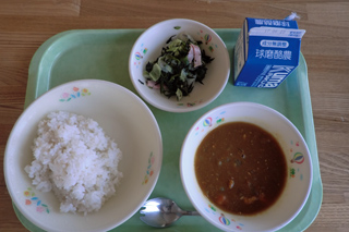 今日の給食 投稿日時 : 2017/06/16 ei/ho ★チキンカレー★牛乳★ほうれん草のサラダ今日のサラダは、湯前産のほうれん草です。冷凍してあるので、一年中食べることができます。ひじきも入っているので、鉄分補給、貧血予防のサラダです。