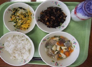今日の給食 投稿日時 : 2016/09/05 ei/ho ★麦ごはん★牛にゅう★けんちん汁★ひじきのいり煮★千草和え 今日は、今が旬のひじきを使ったひじきのいり煮でした。鉄分やカルシウムがたくさん含まれているので、運動会に向けての体づくりにぴったりな一品でした。
