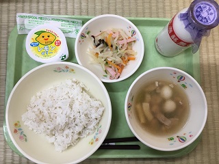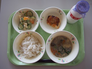 今日の給食 投稿日時 : 2016/10/07 ei/ho ★麦ごはん★牛にゅう★いきなり団子汁★魚の西京焼き★れんこんときゅうりのごまだれ今日は、いきなり団子汁ということで、だんごの中に、いきなり団子のように「さつまいも」を練り込んで団子を作りました。団子汁の団子には、他にも「じゃがいも」や「かぼちゃ」を入れてもおいしくいただけますよ♪