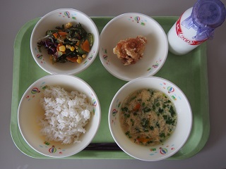 今日の給食 投稿日時 : 2016/09/26 ei/ho ★麦ごはん★牛にゅう★かきたま汁★とりのからあげ★海藻サラダ 今日は、海藻サラダでした。わかめ・こんぶ・ツノマタ・トサカノリ・キリンサイという5種類の海藻が入っていました。 海藻には、食物せんいやカルシウムなどのミネラルがたっぷりと含まれているので、骨を丈夫にしてくれたり、おなかの調子を整えてくれたりしますよ♪