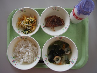 今日の給食 投稿日時 : 2016/09/29 ei/ho ★麦ごはん★牛にゅう★わかめスープ★豚肉のプルコギ-風★もやしのナムル今日は、韓国の料理「プルコギ-」を再現したメニューでした。プルコギ-とは、お肉をしょうゆやさとう、にんにくなどにつけ込み甘辛く焼き上げたものです。今日の献立にもにんにくやしょうが、ねぎなどが入ってスタミナ満点でした!