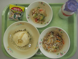 今日の給食 投稿日時 : 2016/10/12 ei/ho ★さつまいもの蒸しパン★牛にゅう★焼きビーフン★バンバンジーサラダ★うまかってん今日は、さつまいものむしパンを手作りしました。今が旬のさつまいもは、ビタミンCを多く含んでいるのでかぜなどから体を守ってくれたり、おはだをツルツルにしてくれたりしますよ!