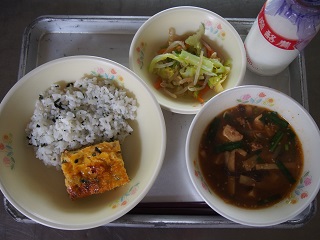 今日は、ビビンバでした。ビビンバは、韓国料理の一つです。同じくわかめスープも韓国でよく食べられる料理です。ちなみに韓国では、わかめスープは、誕生日などのお祝い事のときによく食べられる料理だそうですよ。