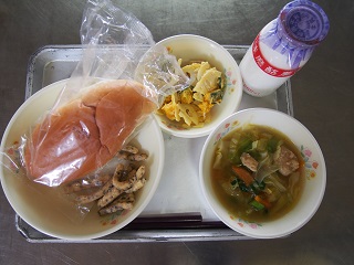 今日は、足りない栄養を補うために特別に具だくさんのみそ汁がついていました。