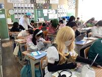 今朝はずいぶん冷え込みましたが、各教室では、なずなの会の皆様方から温かいお話をたくさん聞かせていただきました。定番の昔話や人気の物語、季節のお話などの読み聞かせに、子どもたちもじっと耳を傾けていました。