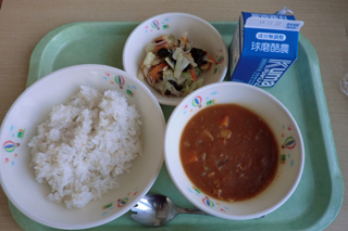 熊本県は日本有数の米どころで、おいしいお米がたくさん収穫されています。給食に出ているのは、「うるち米」です。今日のおこわには、「もち米」混ぜて炊いています。いつものごはんよりもちもちとした食感になります。「もち米」は、おもちやおかき・あられなどに加工されます。