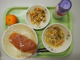 今日の給食 投稿日時 : 2016/07/11 ei/ho ★ミルクパン★牛にゅう★冷やしちゅうか★ゴーヤチャンプルー★冷凍みかん今日は、夏の暑さから体を守ってくれる食材を使ったメニューでした。ゴーヤは、苦手な人でも食べられるようにと、うすくスライスして、じっくりと炒めたので、苦手な人でも食べられていたようでよかったです!(ゴーヤが好きな人には、少し物足りなかったでしょうか。。。)ゴーヤには、ビタミンなどがたくさん含まれているので、夏の暑さから体を守ってくれるはたらきがありますよ♪