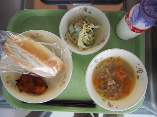 今日の給食 投稿日時 : 2016/06/15 ei/ho ★米粉パン★牛にゅう★やきそば★ささみときゅうりのサラダ★ミニトマト今日は、ミニトマトでした。ふつうの大きなトマトよりもミニトマトの方が栄養多く含まれています。苦手な人もしっかり食べることができたでしょうか?