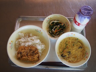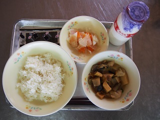 今日は、たくあんのごま和えでした。たくあんは、大根とぬかや塩などを混ぜて漬ける漬け物です。今から約150年前の江戸時代に沢庵というお坊さんが考えたと言われています。いろいろな食べ物の由来を調べてみるのも楽しいですね。