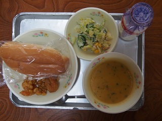 今日は、パンにツナサラダをはさんで食べる「セルフツナサンド」でした。みなさんうまくパンにはさむことができましたか?