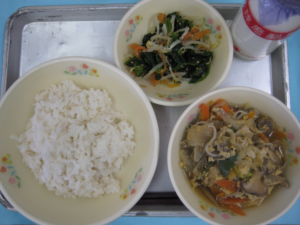 2014年3月11日 投稿日時 : 2014/03/14 ei/ho ☆ 麦ご飯 ☆ 牛とじ丼(具) ☆ ほうれん草のごま和え 牛肉の赤身部分には、血液を作るもとになる鉄分が多く含まれます。体内での吸収率が高い「ヘム鉄」という種類ですので、貧血予防に効果的です。今日は、そんな牛肉をたくさん使った「牛とじ丼」です。