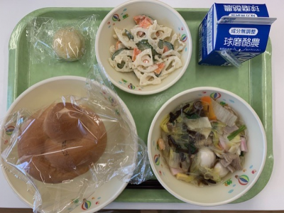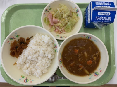 米粉パン、牛乳、カレーうどん、冬野菜サラダでした。