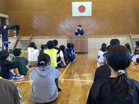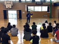 町役場から防災担当の方々に来ていただき、災害が起きたときの町の対応等について話をしていただきました。