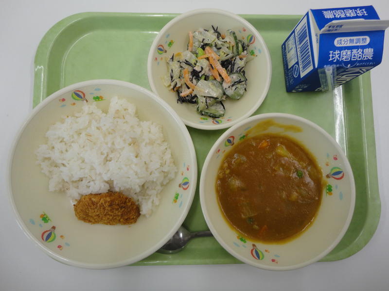 今日の給食 投稿日時 : 2019/08/26 tyu ★麦ごはん ★牛乳 ★カレー ★メンチカツ ★ひじきとツナのサラダ 今日から2学期がスタートしました。 2学期最初のメニューは、メンチカツカレーでした。カレーだけでも嬉しい子どもたちですが、メンチカツがついていたのでさらに楽しみな様子でした。 これから運動会の練習も始まるので、体力をつけるためにもしっかり3食食べてもらいたいです。