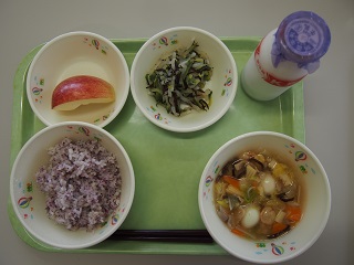 今日の給食 投稿日時 : 2016/09/23 ei/ho ★ゆかりごはん★牛にゅう★八宝菜★かふうあえ★りんご今日は、「八宝菜」の『八』という字は、中国ではたくさんの・多いという意味があるそうです。八宝菜でした。たくさんのお肉や野菜などの具材が入っていました。しっかり食べて運動会に向けて力をつけていきましょう♪
