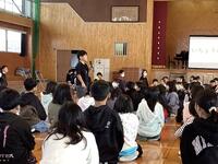 毎月1回行われているいちょうの会(児童集会)ですが、今回は体育委員会の発表でした。内容は12月に実施する持久走大会に向けて「けがをしないための準備運動を教えます!」です。