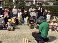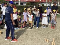 地域おこし協力隊の皆さんにルールを教えていただき、早速チャレンジ。はじめは恐る恐るでしたが、ルールを理解すると、狙いどころを考えたり投げ方を工夫したりとみんな夢中になって楽しみ、大いに盛り上がりました。