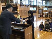 なお、式に先立って表彰式があり、人吉球磨美術展に入選した中から6年生のありまさんが代表で賞状を受け取りました。