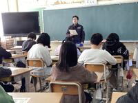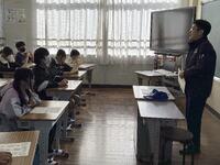 16歳以上が対象ですが、悪質な違反には反則金が科せられます。今のうちから・・・ということで、4月から中学校に進む6年生を対象に、多良木警察署からお越しいただき交通安全に係る講話をしていただきました。