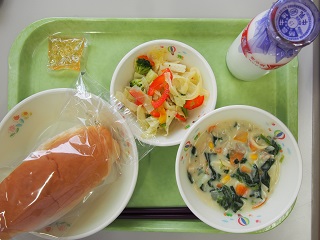 今日のスープには、キャベツ・きぬさや・たまねぎ・じゃがいもなど春に旬をむかえる食べ物が入っていました。