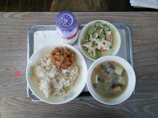 今日の給食 投稿日時 : 2015/06/18 admin ☆麦ごはん ☆牛乳 ☆豆腐の五目スープ ☆いわしの蒲焼き風 ☆春雨の酢の物 今日は、鰯の蒲焼き風でした。一つ一つ揚げて、タレにつけこんでいるのでカリッとした食感をあじわえたのではないでしょうか? 手作りのものが食べられる湯前町の学校給食は素敵ですね。